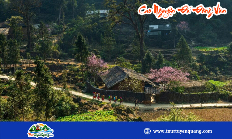 - Mùa xuân là thời điểm Cao Nguyên Đá Đồng Văn khoác lên mình sắc hoa rực rỡ như hoa đào, hoa mận, hoa lê nở khắp các sườn núi và bản làng.